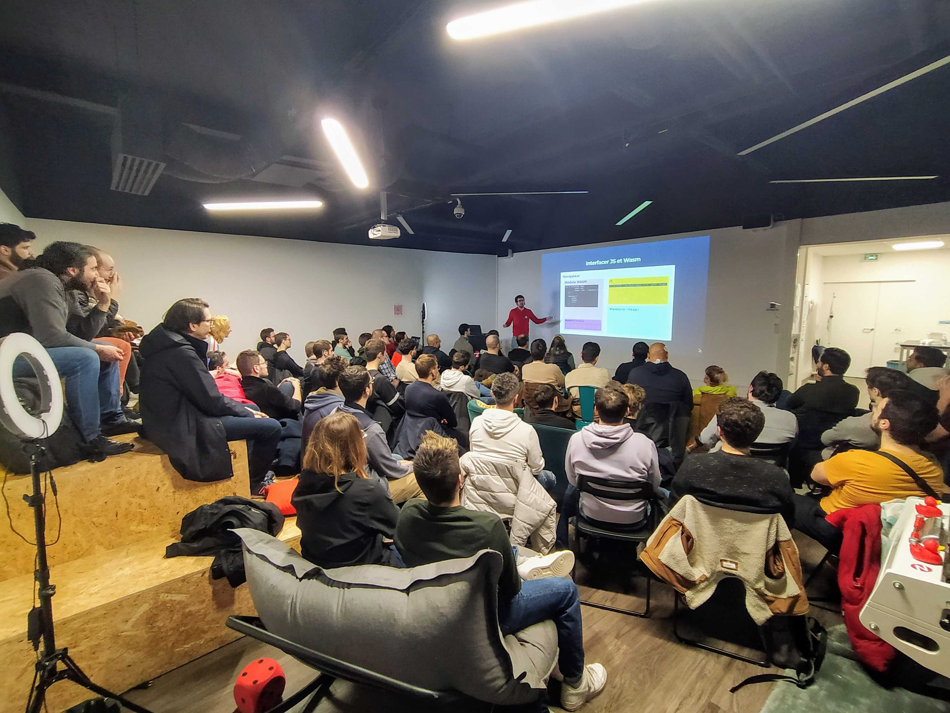 📣 TALK / "Comment j'ai trouvé le sens de la vie grâce à WebAssembly": Le jeu de la vie est un drôle de jeu qui a la particularité de n'avoir pas de joueur. Il se joue de lui-même et produit des configurations qui semblent évoluer de manière autonome, sans intervention extérieure. A partir de règles très basiques, des structures d'une très grande complexité peuvent émerger d'une manière qui évoque l'apparition de la vie sur Terre à partir d'éléments inertes, d'où le nom mystérieux de jeu de la vie. Comme ce jeu se joue idéalement sur des plateaux sans limite de taille, la question des performances de l'implémentation est capitale. Pour du développement web, cet exemple permet à la fois de voir les limites de JavaScript pour effectuer un grand nombre de calculs et de présenter une solution complémentaire à la réduction de la complexité algorithmique : une implémentation en WebAssembly qui permet de déléguer la charge de calcul à un langage compilé plus performant, Rust. L'objectif du talk est de présenter mon implémentation du jeu de la vie et comment je suis parvenu à optimiser ses performances grâce à cette technologie.